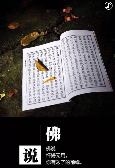 佛說:懺悔無用。你有未了的前緣,去吧,去續(xù)你的姻緣,我等你回來。