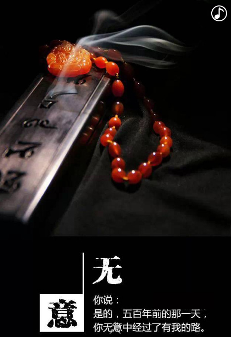 你說:是的,五百年前的那一天,你無意中經(jīng)過了有我的路,我一直等你,來實現(xiàn)這場擦肩而過的緣。