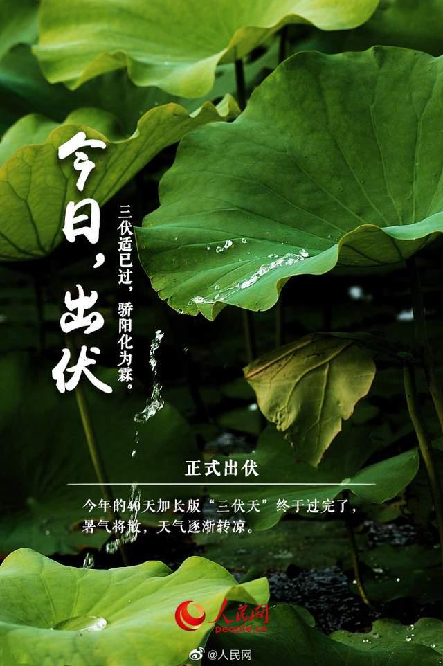 從7月16日到8月24日,長(zhǎng)達(dá)40天的加長(zhǎng)版“三伏天”終于結(jié)束,今天正式出伏。伏天過(guò)后,暑熱將漸漸退散,天氣將逐步?jīng)鏊?。氣候的變化也將給人們的起居作息、飲食習(xí)慣帶來(lái)改變。